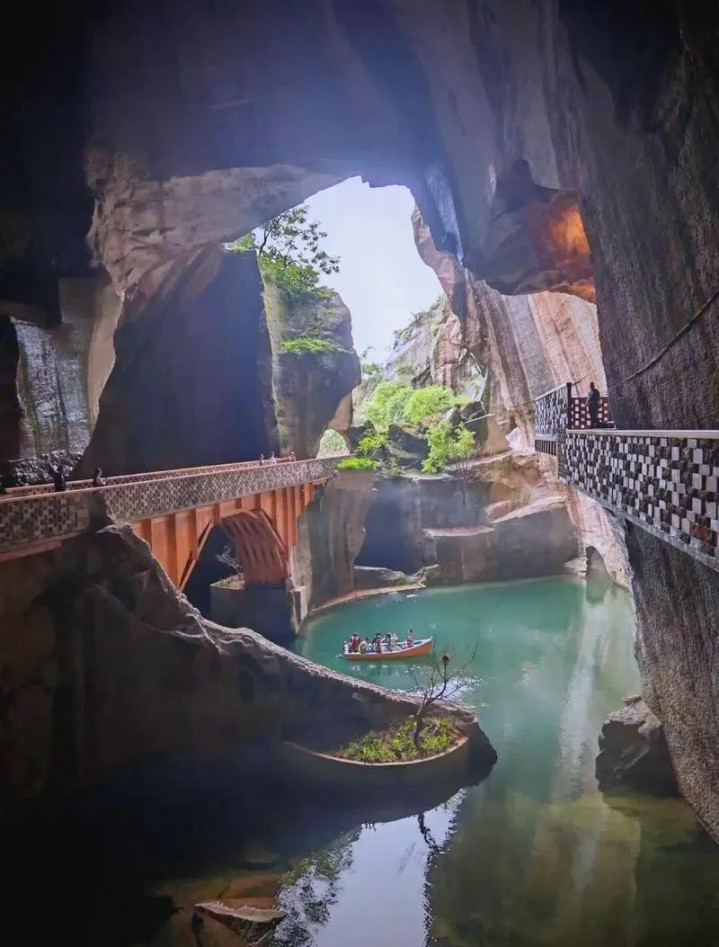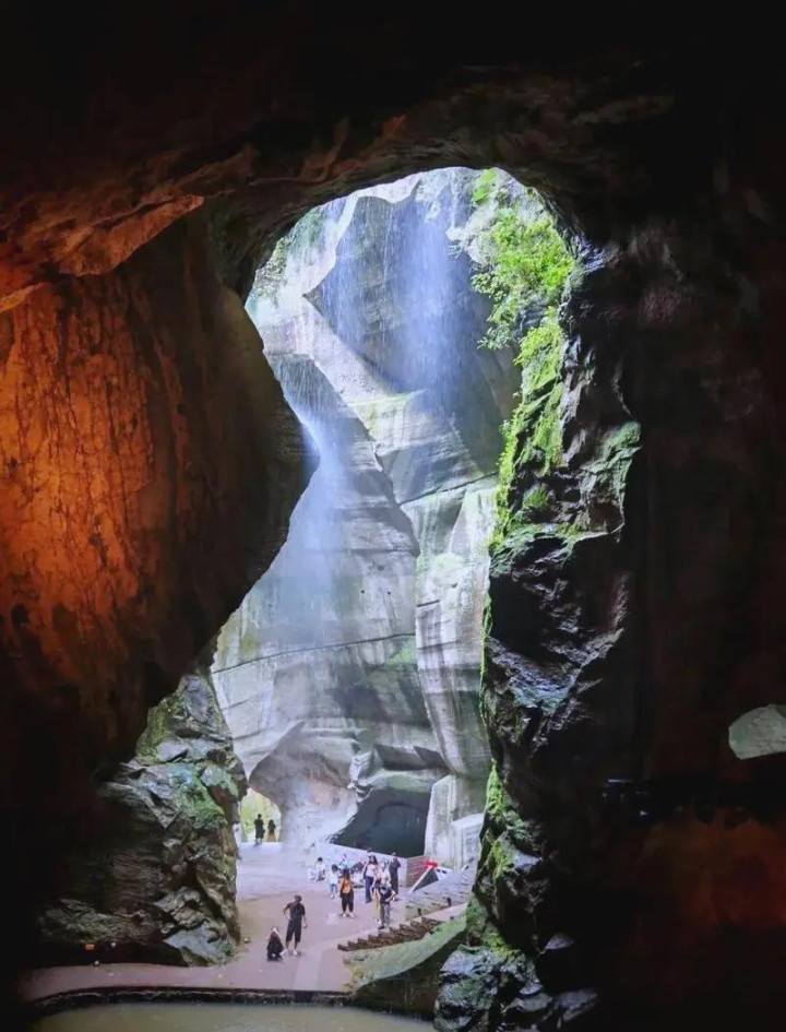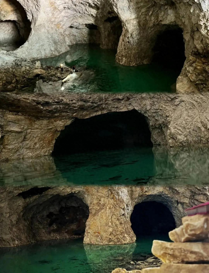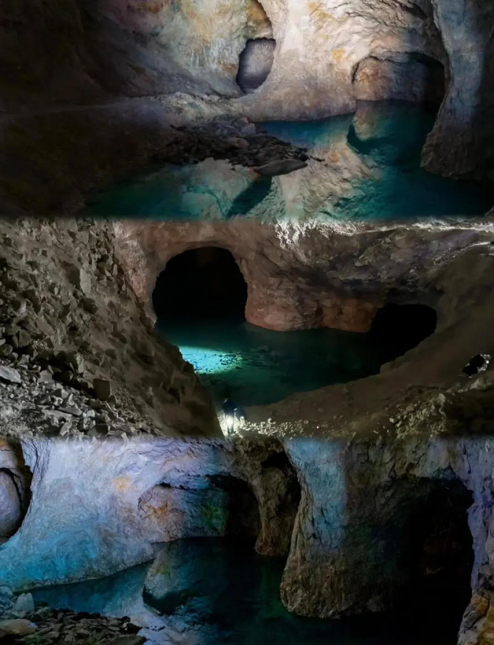洞内还有两处积水潭,每当光线充足之际,潭水便会呈现出迷人的湛蓝