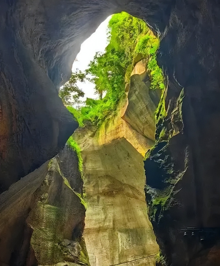 洞体庞大无比,大洞与小洞相互嵌套,错落有致又彼此连通,构成一幅壮观的景象