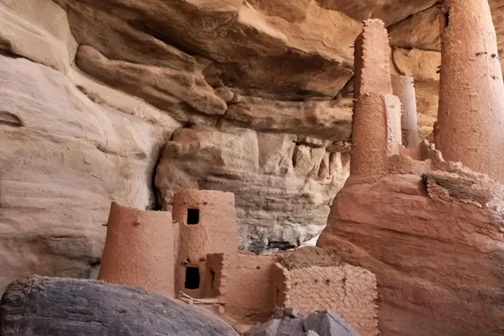 马里的悬崖居住文明,开凿了庞大的洞穴和隧道网络,连接着著名的悬崖房屋。建造者将天然岩石构造融入建筑,使建筑仿佛从悬崖中生长出来。