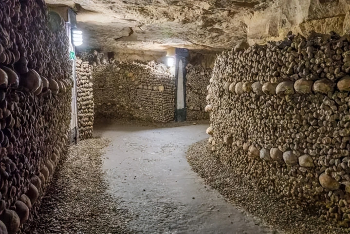 “光明之城”的黑暗地下世界,安葬着600万居民的遗骸,沿着170英里(273.6千米)的隧道以精美的图案排列。这些地下墓穴最初是石灰岩采石场,为巴黎标志性建筑提供了建材。